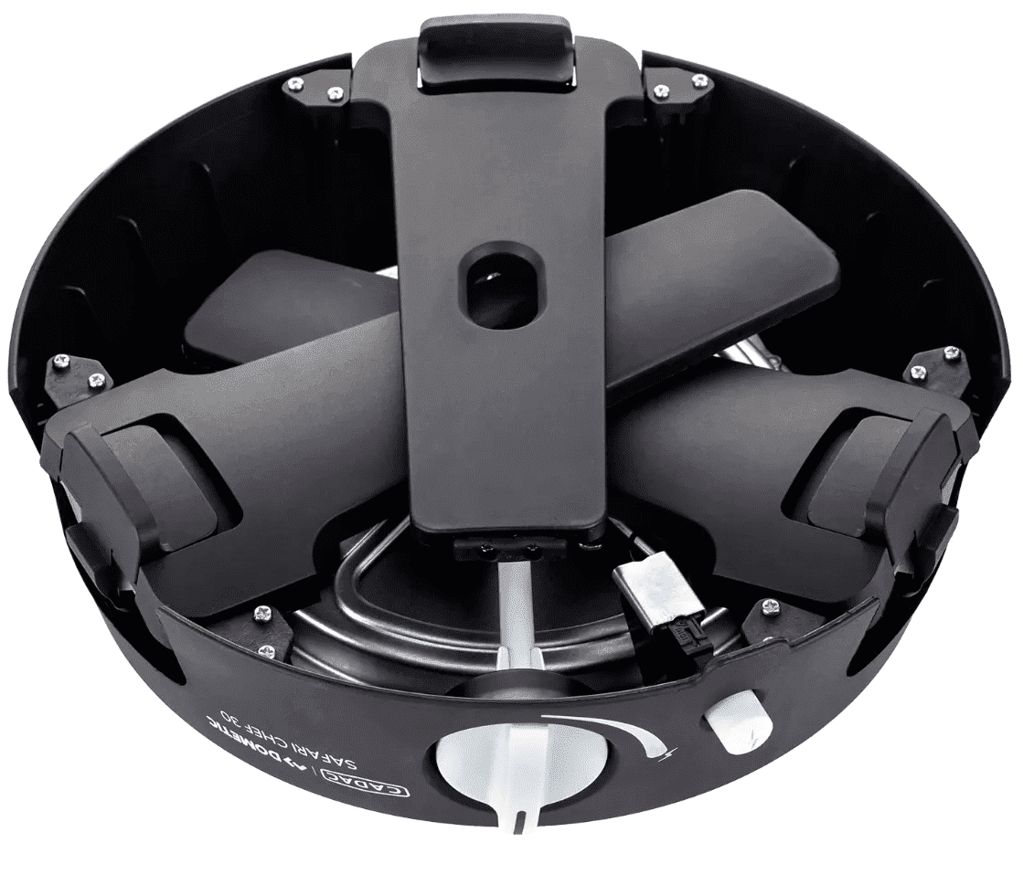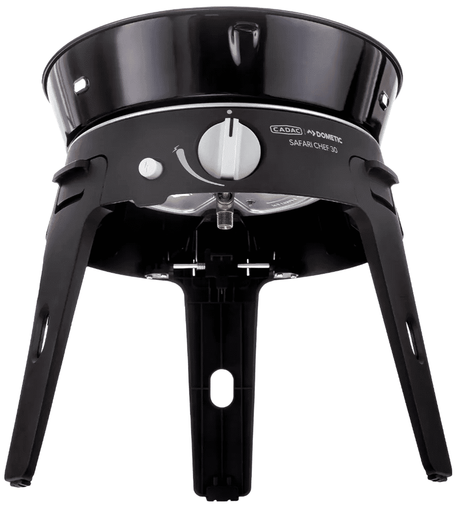 De Safari Chef is eenvoudig mee te nemen dankzij de inklapbare pootjes en wordt nu nog compacter opgeborgen in de meegeleverde draagtas. In de pootjes zitten openingen waardoor je een QR koppeling kunt laten zitten als je het toestel opbergt. Een ideale BBQ voor gebruik op de camping, op het balkon of in het park!