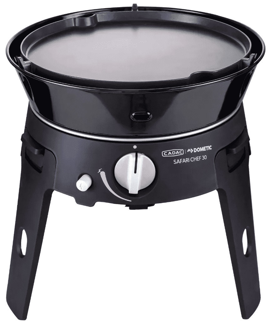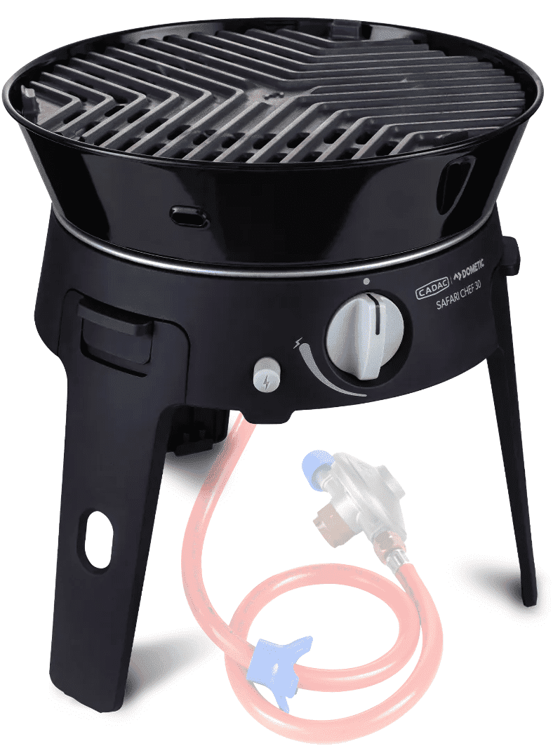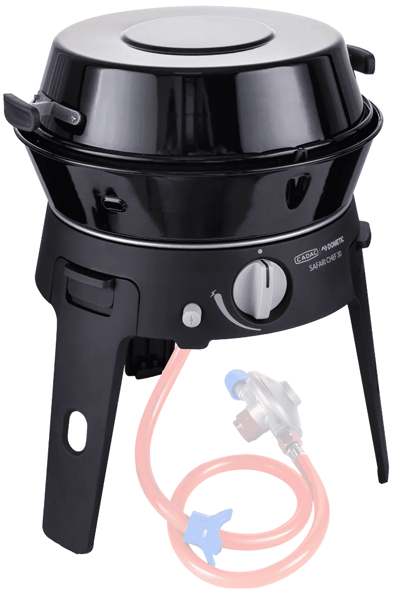 De Safari Chef 30 is een compacte, veelzijdige gasbarbecue, perfect voor onderweg en op vakantie. Met een gewicht van slechts 4,5 kg en maar liefst vier verschillende kookoppervlakken – een pandrager, BBQ rooster, bakplaat en een deksel / soeppan – biedt deze barbecue eindeloze mogelijkheden voor buiten koken.