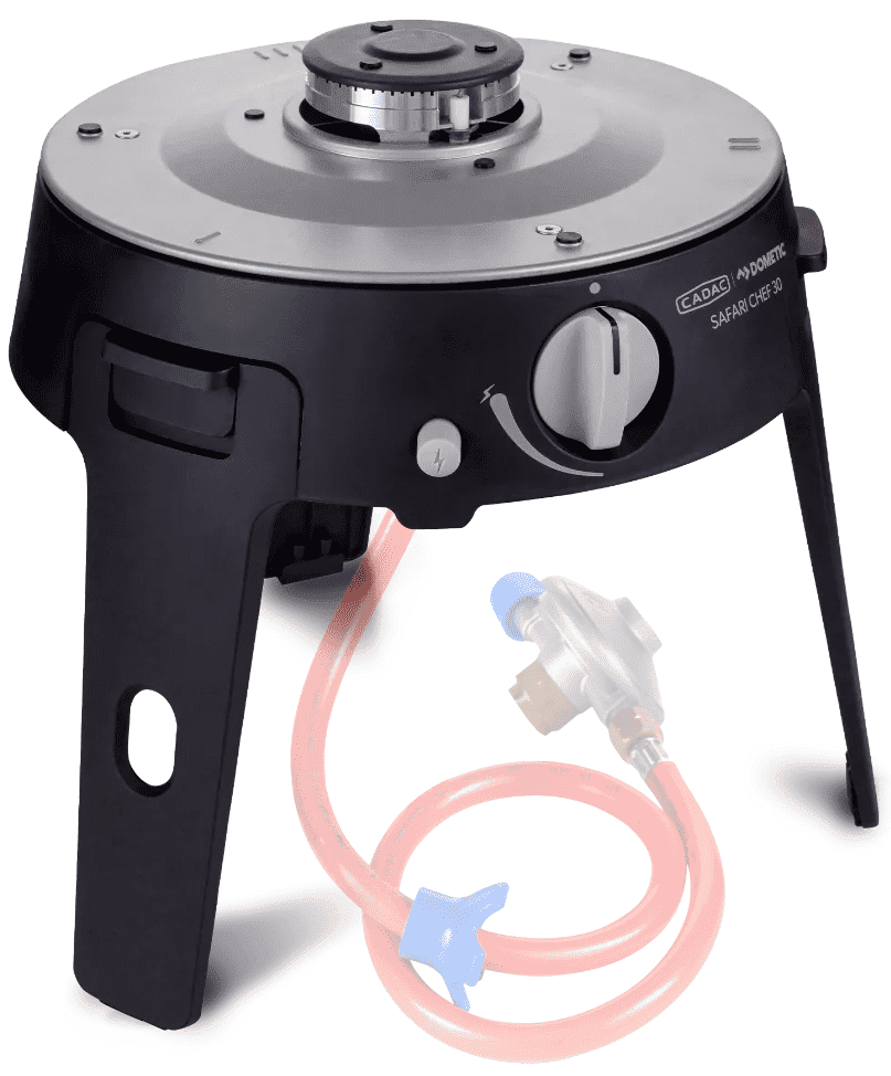 De Safari Chef is verkrijgbaar in twee uitvoeringen: de LP-versie (lagedruk) werkt met een hervulbare gasfles of CADAC Power Pak, en de HP-versie (hogedruk) werkt rechtstreeks op een EN417-gascartridge. Kies de versie die het beste past bij jouw kookbehoeften en gebruiksomstandigheden.