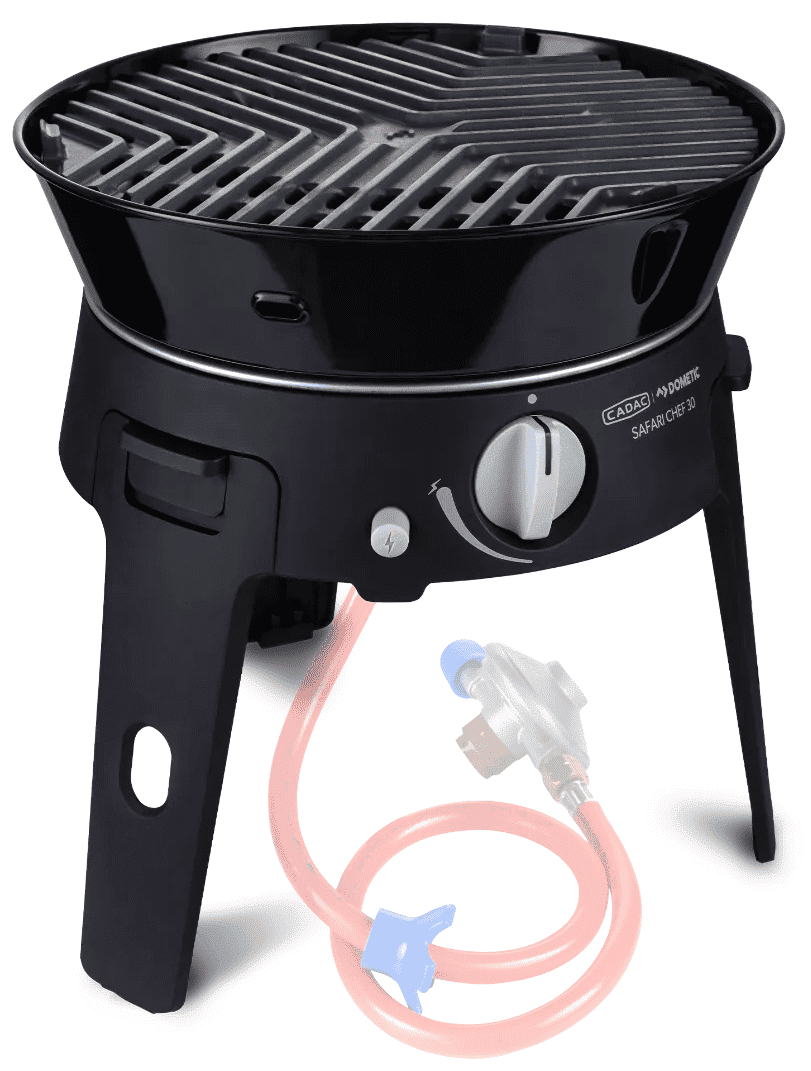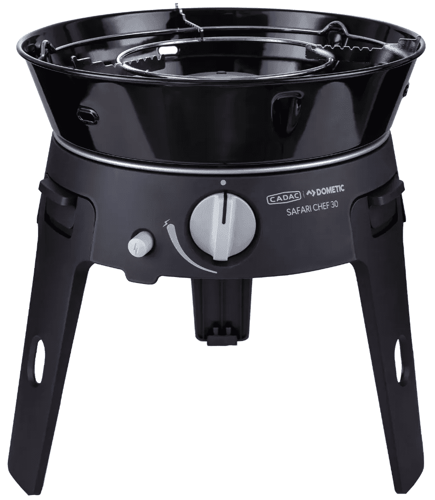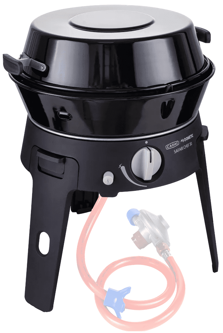 De Safari Chef 30 is een compacte, veelzijdige gasbarbecue, perfect voor onderweg en op vakantie. Met een gewicht van slechts 4 kg en drie verschillende kookoppervlakken – een pandrager, BBQ rooster en een deksel / soeppan – biedt deze barbecue eindeloze mogelijkheden voor buiten koken.