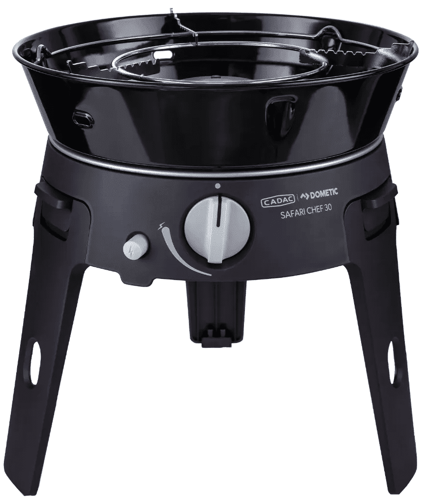De Safari Chef 30 is een compacte, veelzijdige gasbarbecue, perfect voor onderweg en op vakantie. Met een gewicht van slechts 4,5 kg en maar liefst vier verschillende kookoppervlakken – een pandrager, BBQ rooster, bakplaat en een deksel / soeppan – biedt deze barbecue eindeloze mogelijkheden voor buiten koken.